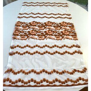 Vintage 70s curtain, tan, rust floral & dots embroidered pattern, sheer panel