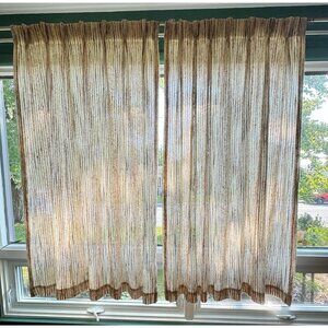 Vintage 70s curtain, thick woven tan and brown panel, pleated, price for 1 pair