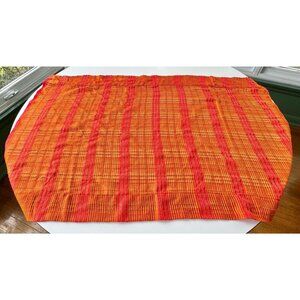 Vintage 70s curtains, red, orange, yellow sheer woven panels, tiebacks, pair