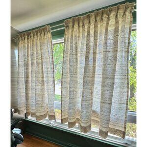 Vintage 70s curtains, tan, cream, brown stripes, pleated, price for 1 pair