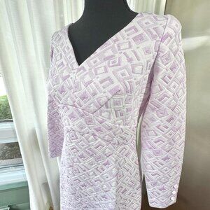 Vintage 70s dress, lavender textured geometric print, A-Line silhouette gown