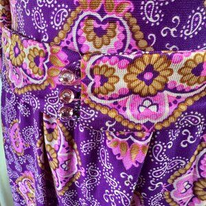 Vintage 70s dress, purple pink MOD paisley pattern, long sleeves, ruffled hem