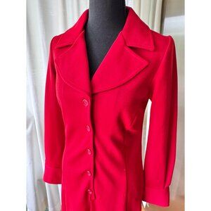 Fabulous Mod 70s dress! bright red with oversized lapels, this button-down fitted bodice and A-line skirt shirtdress makes quite the statement.