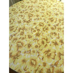Vintage 70s fitted sheet, yellow brown large florwers bed sheet, twin size bed