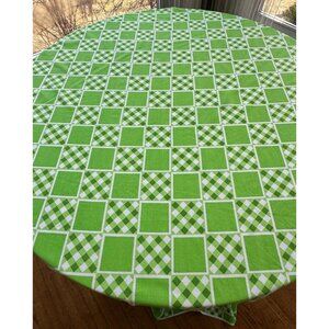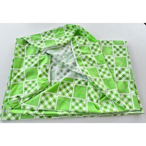 Vintage 70s fitted/bottom sheet, green checkered geometric bedsheet, double/full