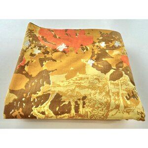 Vintage 70s flat sheet, orange, brown, yellow flowers, queen size, Pepperell