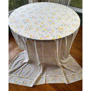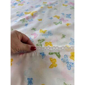 Vintage 70s flat sheet, yellow, pink, blue green butterflies, twin size, Dior