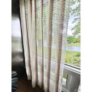 Vintage 70s mesh curtain, tan, rust, brown wavy stripes, pleated, per panel