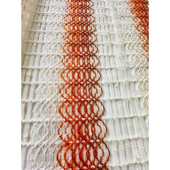 Vintage 70s mesh curtain, tan, rust, orange wavy stripes, rod header, per panel