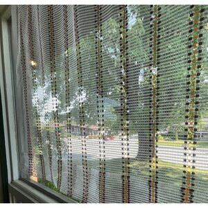 Vintage 70s mesh curtain, white, brown, orange striped net woven, single panel