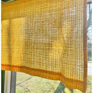 Vintage 70s net curtain, yellow mesh, short panel, rod header