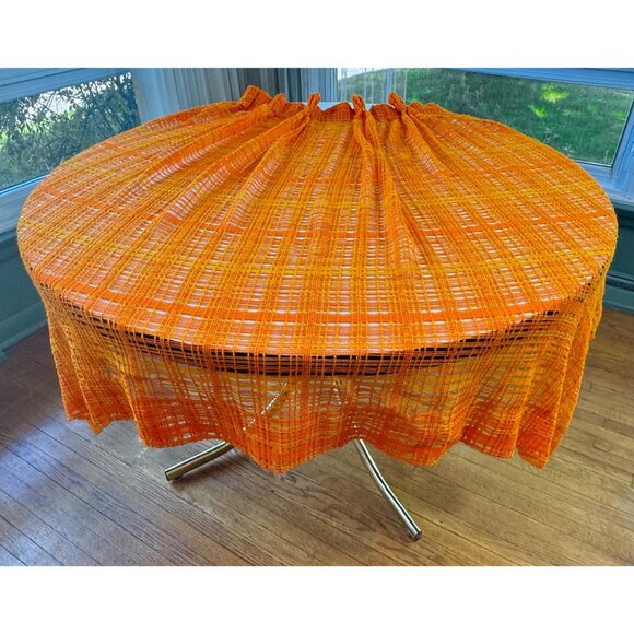 Fabulous 70s orange mesh curtains, sold as a pair.