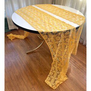 Vintage 70s net mesh valance, rod heading, golden yellow single panel