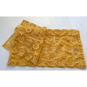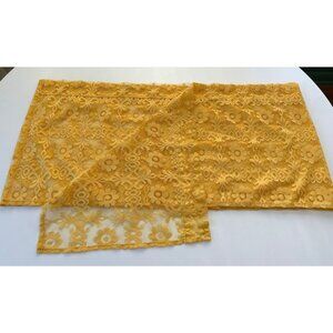 Vintage 70s net mesh valance, rod heading, golden yellow single panel