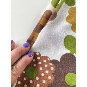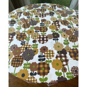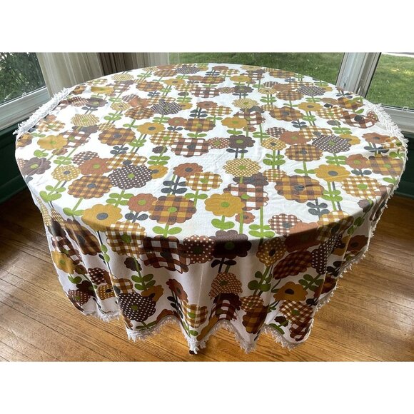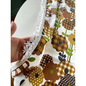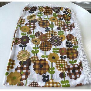 Vintage 70s oval tablecloth, brown, orange green flower power, fringed