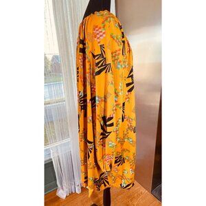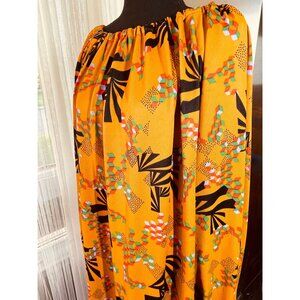 Vintage 70s oversized blouse, puffy sleeves top, yellow black green orange
