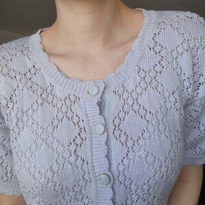 Vintage 70s pastel blue crochet short-sleeved button-up cardigan ✦ coastal grand