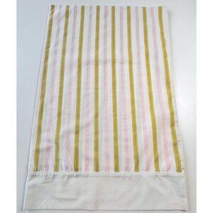 Vintage 1970s pillowcase, pink, green and yellow stripe pattern over a white background. Price is for one, only one is available.