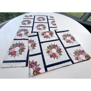 Vintage 70s pillowcases, faux patchwork quilt stars, pair pillow slip covers