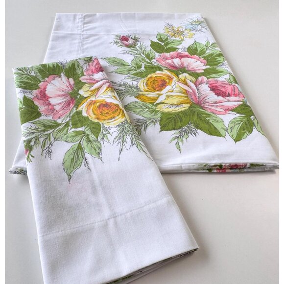 Vintage 70s pillowcases set, floral cottage core casings, Tastemaker USA