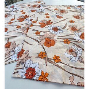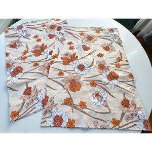 Lovely 70s pillowcases set, beige, orange, white and brown daffodil flowers.