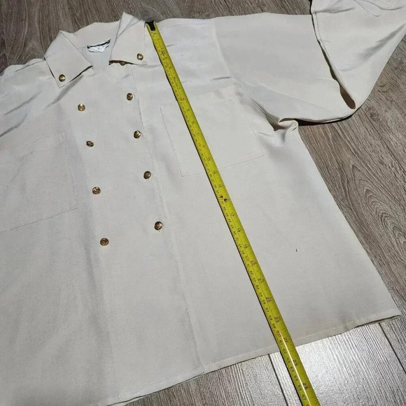 Vintage 70s pirate cream button-up shirt with pointy collar and gold buttons