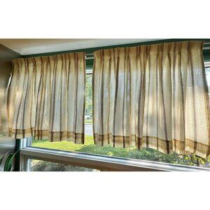 Vintage 70s pleated curtain, price is per panel, 2 are available. Please see my other listings for the second panel. Made in the USA, each panel is 64% cotton and 36% polyester. They are lined, making them light filtering but not completely opaque, perfect for a bedroom or basement window. Color is beige/tan with some brown, vertical stripes. Condition is excellent with no noted issues. As with any woven fabric, there may be minor pulls or snags. Please see pictures for accuracy. measurements are: 48" wide x 44" long Can be hung using pleating hooks as shown in pictures, not included, or curtain clips. This item has been laundered using scent free detergent and without fabric softener. ***************************** VINTAGE CONDITION: All my items are vintage and have been carefully curated. However, as they were previously loved, they may have some wear. I do my best to accurately disclose and photograph in the listings. Please contact me if you have any questions or concerns.