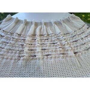 Vintage 70s pleated curtain, beige & brown mesh, groovy horizontal stripes