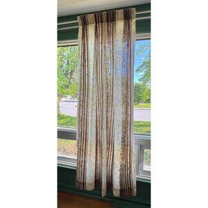 Different shades of brown, vertical stripes. Absolutely stunning! Would be perfect in any room as a statement curtain.