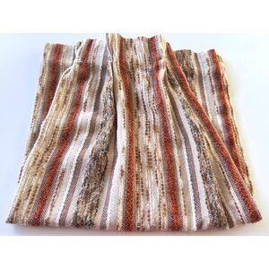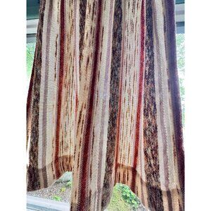 It is thick and rather heavy, large vertical stripes of different brown and rust tones, with a bit of orange and blue fibres details. The panel is not lined.