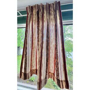 Vintage 70s pleated curtain, brown, beige, rust stripes, thick woven panel