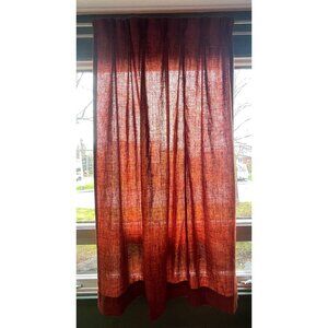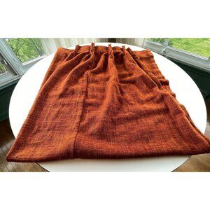Vintage 70s pleated curtain, burnt orange/brick red thick woven, single panel