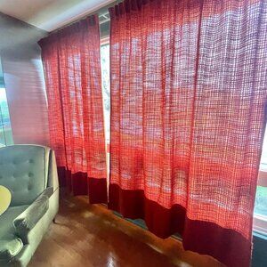 Fabulous vintage late 70s pleated curtain, price is for a single panel, 2 are available. Please see my other listing for the second panel. Color is burnt orange / brick red, panels are a thick woven material with very good weight. In very good condition, little visible wear, only noted issue is fading on the back side. As with any woven fabric, there may be minor pulls. Please see pictures for accuracy. This panel has a pleating tape and can be hung using pleating hooks, as shown in pictures (not included), or curtain clips. Please note that the width is measured flat and once the pleats are made, it will make it more or less narrower, depending on the number of hooks used and pleats made. measurements are: 66" wide x 83" long Hem is 13" long so it is possible to lengthen the panels if need be. This item has been laundered using scent free detergent and without fabric softener. ***************************** VINTAGE CONDITION: All my items are vintage and have been carefully curated. However, as they were previously loved, they may have some wear. I do my best to accurately disclose and photograph in the listings. Please contact me if you have any questions or concerns.