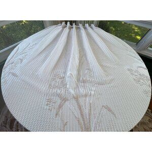 Vintage 70s pleated curtain, cream, golden beige mesh, floral pattern, tropical