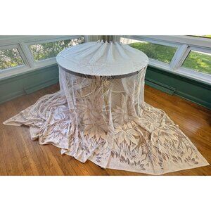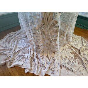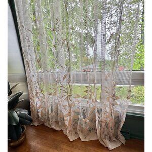 Absolutely stunning! So very tropical boho, this panel has oversized floral pattern in a mesh, cream beige with a subtle golden sheen. The panels are weighted at the bottom, giving a great draping. Would be perfect in any room.