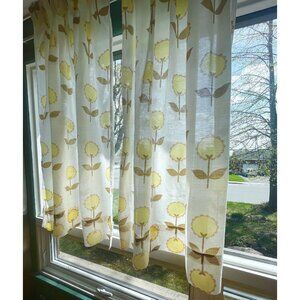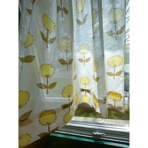 Vintage 70s pleated curtain, large yellow daisies white background, single panel