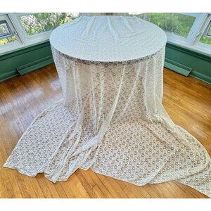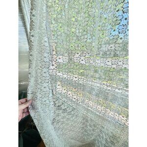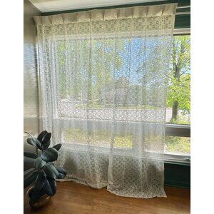 Very boho chic, off-white machine lace mesh, it has a very romantic floral pattern. Perfect for a living room dining room or bedroom window.