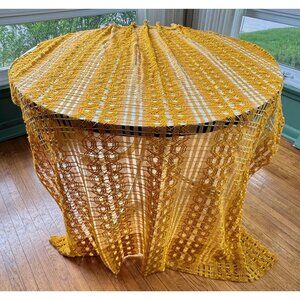 Burnt orange mesh, sheer with groovy open weave geometric pattern.