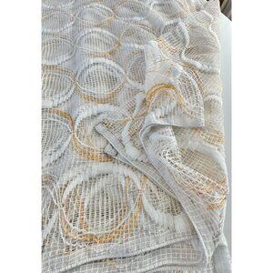 Vintage 70s pleated curtain, white, creamy orange groovy circles, sheer