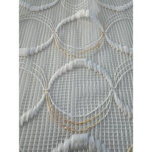 Groovy circles pattern, lightest creamy orange fluffy embroidery over a white background mesh. This oversized panel is just the perfect statement!