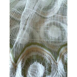 Vintage 70s pleated curtain, white with green/yellow groovy pattern, for 1