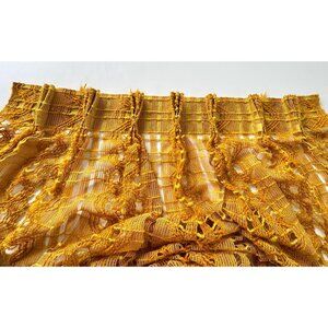 Vintage 70s pleated curtains, orange mesh, open weave geometric, pair