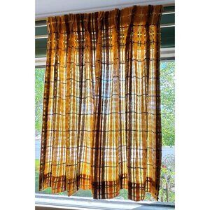 Orange, yellow and brown stripes in a wide plaid pattern, each panel is lightweight and in very good condition, very little visible wear, no noted issue. As with woven fabric, there may be minor pulls. Please see pictures for accuracy.