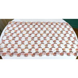 Bold flower pattern over a white background. It is lightweight and sheer, and in excellent condition with very little visible wear. As with this type of material, there may be some minor pulls or snags. Please see pictures for accuracy.
