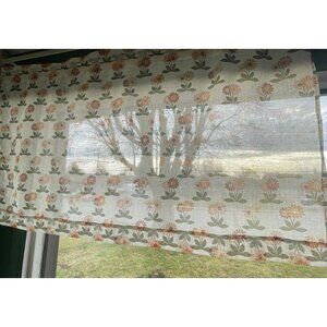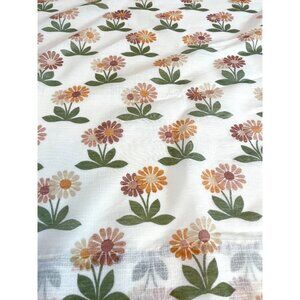 Vintage 70s sheer curtain, green, orange, and brown daisy flower, for one panel