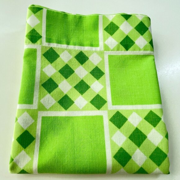 Vintage 70s single pillowcase, green geometric checkered, TruPrest