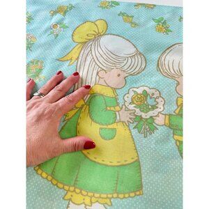 Vintage 70s single pillowcase, juvenile, little boy & girl with bouquet, Wolfpit