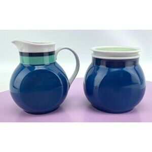 Rare find! Vintage Noritake Hawaiian Holidays, Younger Image, circa 1972 sugar and creamer set. Very vibrant print, deep blue, teal, navy and lime green