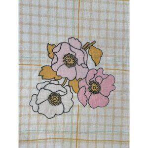 Vintage 70s top/flat sheet, small pink poppy flowers, checkered, twin size