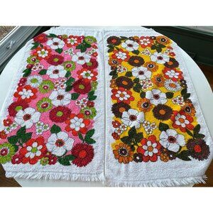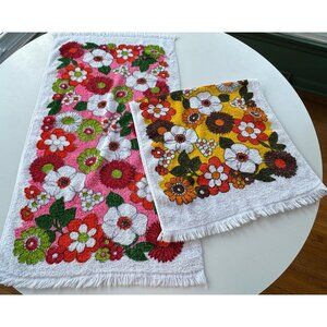 Vintage 70s towel, choice between pink/red or orange/brown daisies